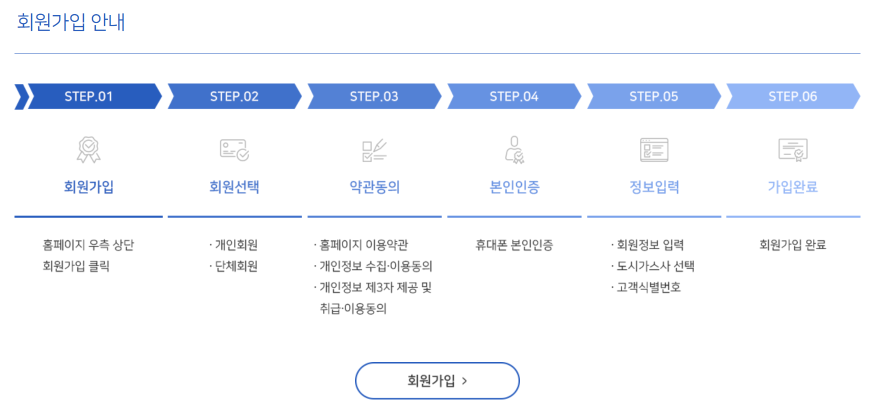 도시가스 고객정보 입력: 회원가입 시 도시가스사를 선택하고, 고객식별번호와 계약자명을 입력합니다. 고객식별번호는 도시가스 고지서에서 확인할 수 있습니다.